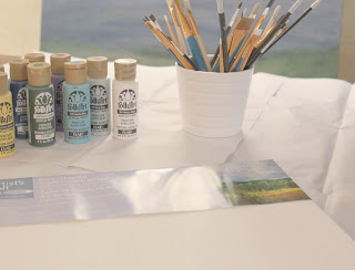 When the canvas is dry, mix some of the wicker white with water. It should be the consistency of skim milk. Brush the watered down white paint onto the canvas and then wipe and dab it off with a paper towel. You are trying to mute the painting.